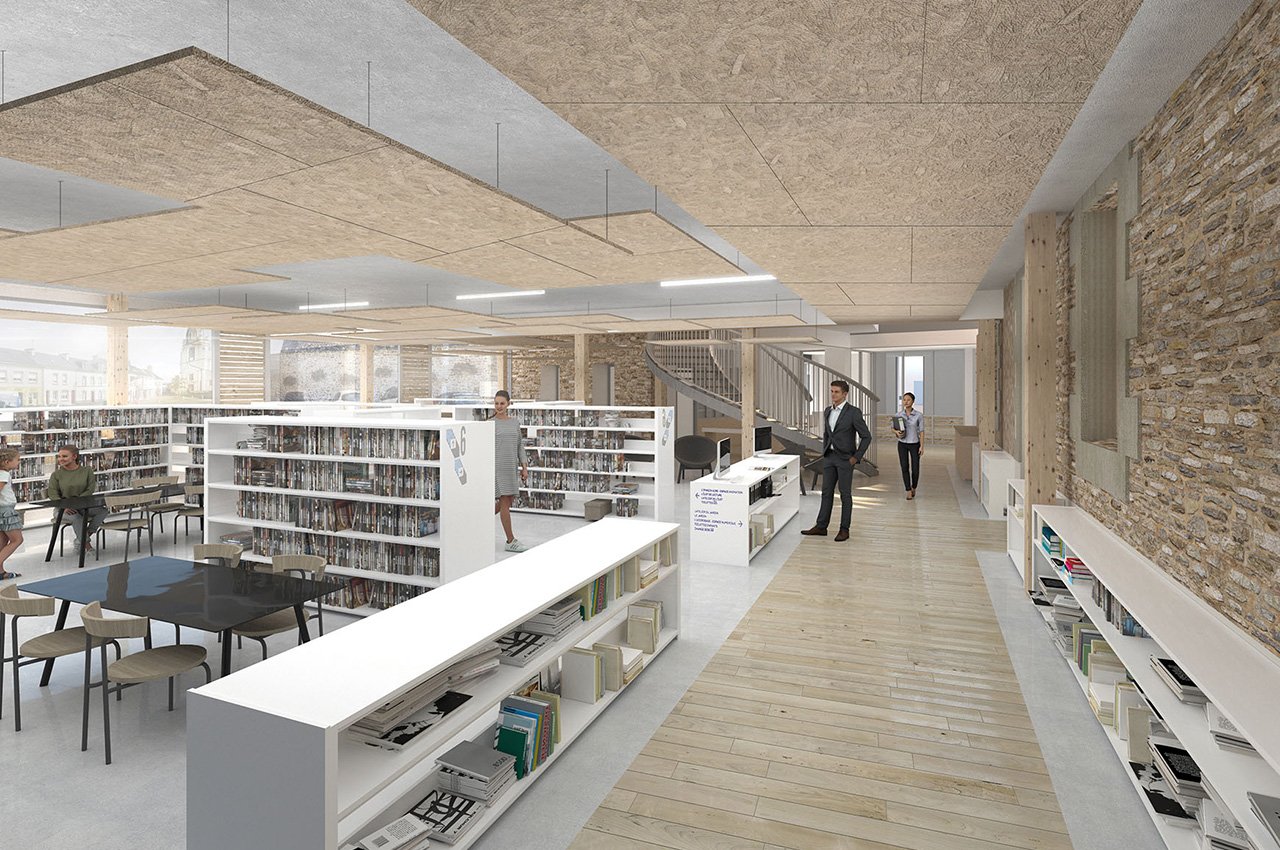Réhabilitation lourde d’une maison de ville en médiathèque, théâtre de poche, salle d’exposition et salles de musique. Projet non lauréat.